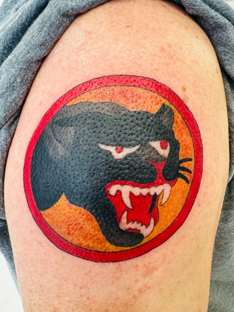 Anyway, this year, for my birthday and in celebration of the 80th anniversary of VE Day, I got a tattoo based on the shoulder patch from his old Army uniform:
